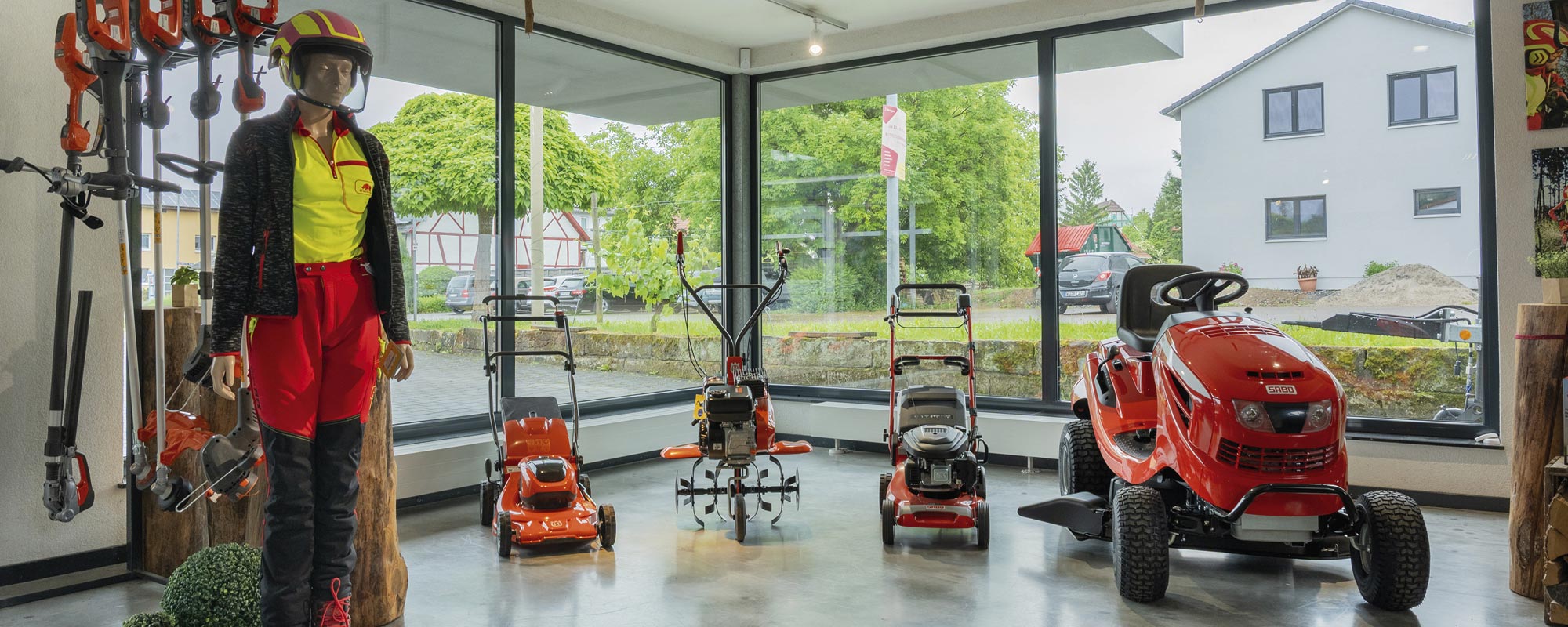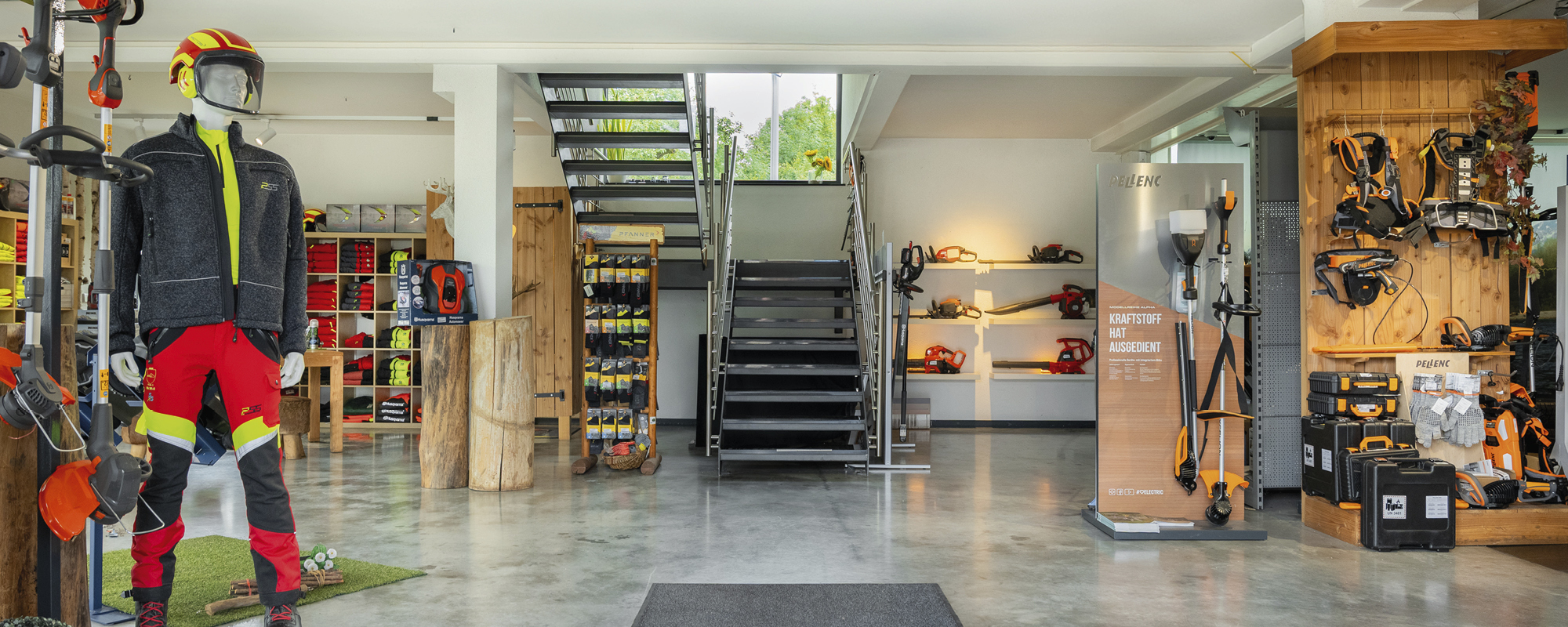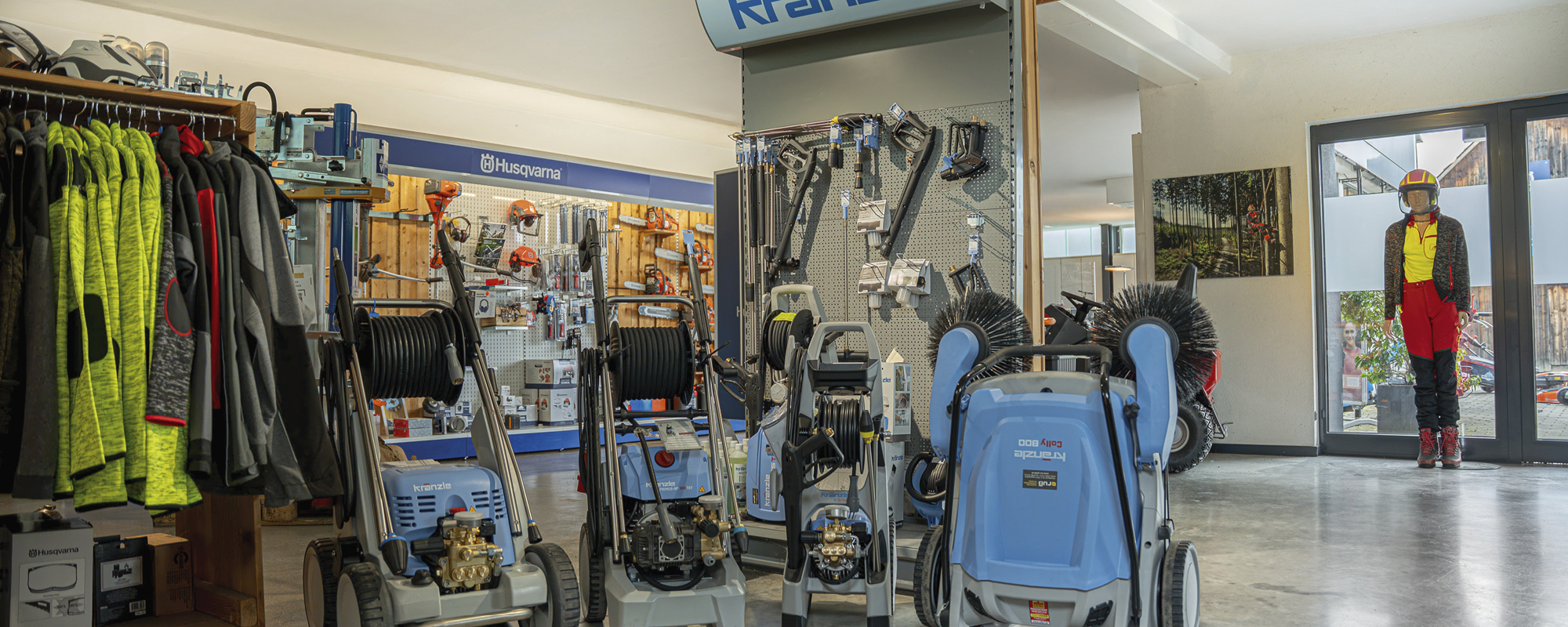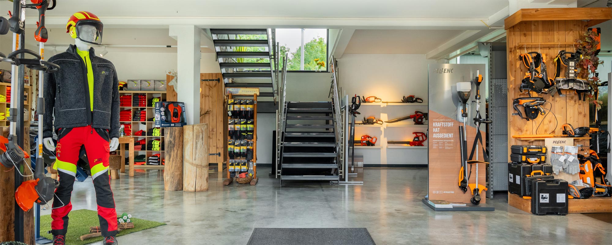 In unserem modernen Verkaufsraum präsentieren wir eine große Auswahl an Forstausrüstung, Motorsägen, sowie Garten- und Akku-Geräte. Zudem zeigen wir Ihnen, wie wichtig gute und sichere Kleidung für Wald und Straße ist.