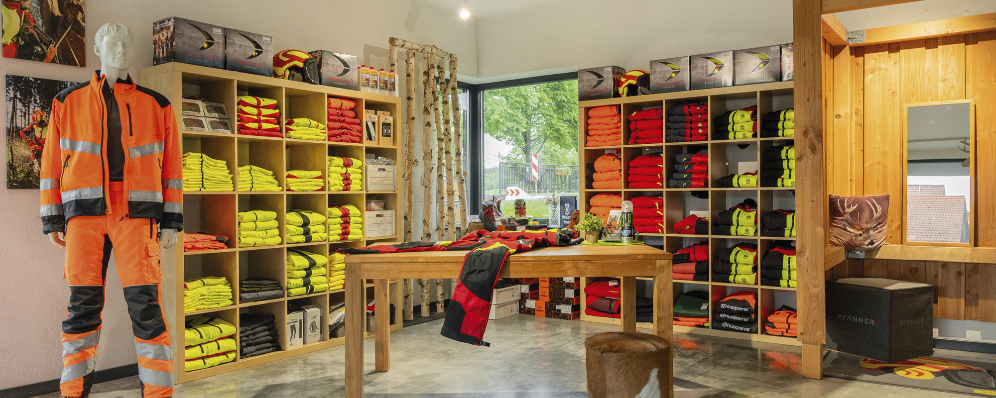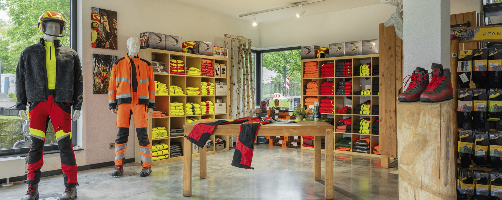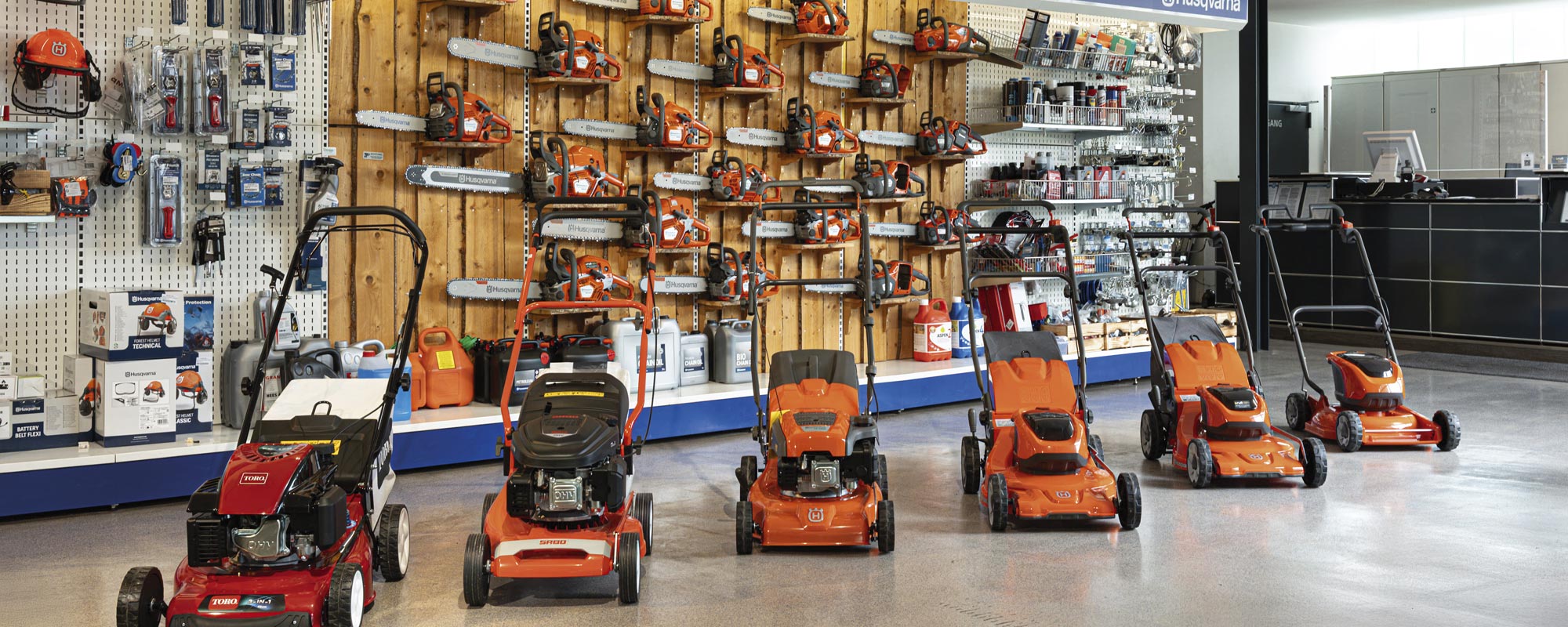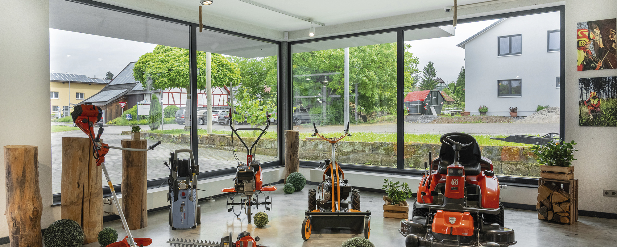 In unserem modernen Verkaufsraum präsentieren wir eine große Auswahl an Forstausrüstung, Motorsägen, sowie Garten- und Akku-Geräte. Zudem zeigen wir Ihnen, wie wichtig gute und sichere Kleidung für Wald und Straße ist.